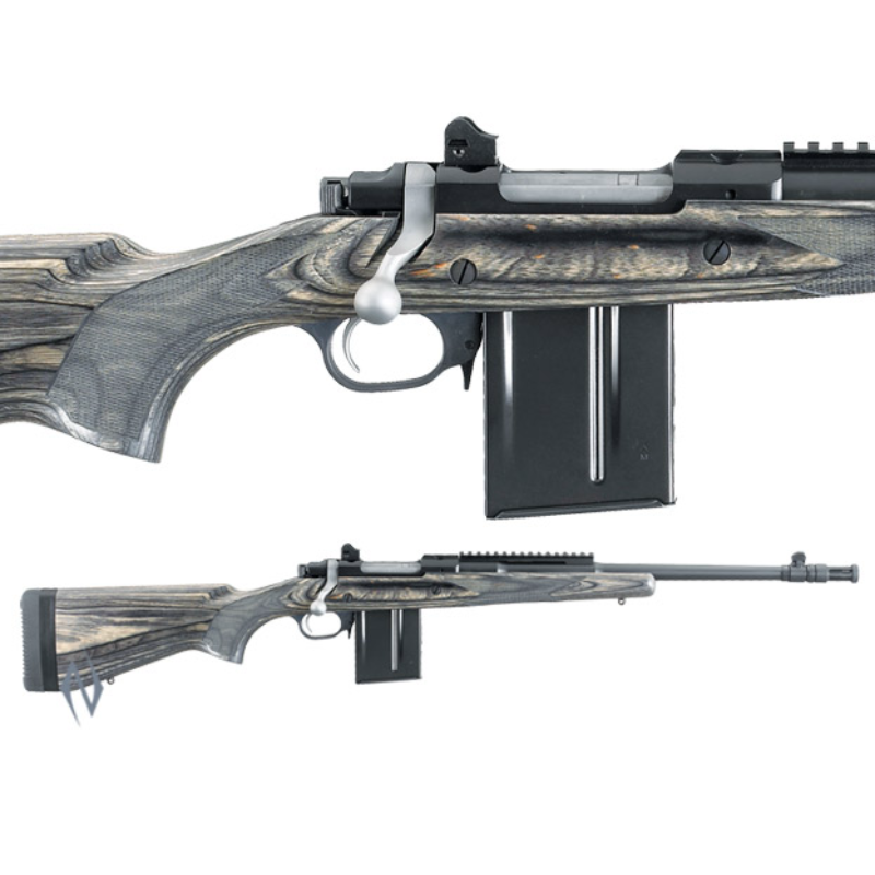 Beware the man with one gun, for he probably knows how to use it. Never has this been more true than with the Ruger Gunsite Scout Rifle, the one rifle to have if you could have only one. It is the perfect lightweight, hard-hitting, do-it-all bolt-action rifle. >>FEATURES: <> Removable Flash suppressor. <> The forward-mounted Picatinny rail allows for the mounting of modern optics, like an intermediate eye relief scope (not included), for "both eyes open" sighting and super-fast target acquisition. <> Also offers a built-in, accurate sighting system with ghost ring adjustable rear aperture sight and a protected, non-glare post front sight. <> 10-round, detachable box magazine with push-forward, Mini-14 style, magazine release just forward of the trigger guard (additional 10-round, 5-round and 3-round magazines available. <> Patented integral scope mounts, machined directly on the solid-steel receiver, provide a stable mounting surface for scope rings, eliminating a potential source of looseness and inaccuracy in the field (scope rings included). <> Soft rubber recoil pad with buttpad spacers allow the rifle to be properly sized for different shooters or varying levels of outerwear or defensive gear (three 1/2'' spacers included). <> Precision-rifled, medium contour, cold hammer-forged barrel. <> Rugged and reliable with a glass-reinforced nylon trigger guard and magazine well, and a black laminate stock with checkered grip and forearm. <> Non-rotating, Mauser-type controlled round feed extractor is the most positive case extraction system ever invented, and features a fixed blade-type ejector that positively ejects the empty cases as the bolt is moved fully rearward. <> Developed with Gunsite, this rifle is "Gunsite Approved" and features the Gunsite logo engraved on the grip cap and name rollmarked on the receiver. <> Also Includes: rugged, one-piece, stainless steel bolt; three-position safety; studs for mounting sling swivels.