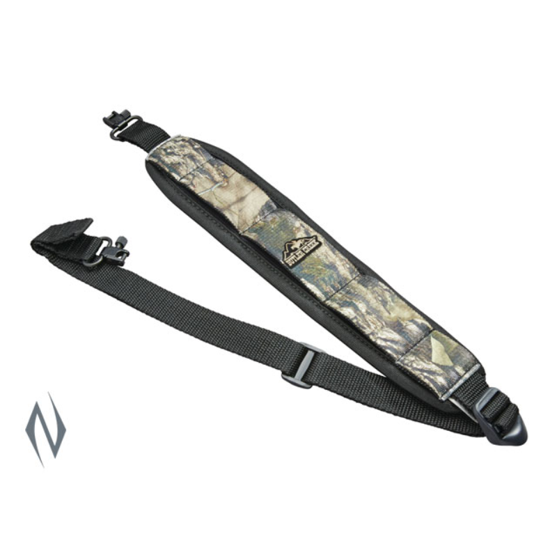 >>Its stretchable construction and soft padding soak up the bounce you get with traditional slings, reducing felt weight up to 50%, so even the roughest hikes are smooth on your shoulder. >>Features: <>Soft, flexible closed cell neoprene with Comfort Stretch backing. <>Dramatically reduces felt weight. <>Non-slip Grippers keep it firmly in place. <>Available in popular camo patterns, without Swivels <>Alaskan Magnum includes shell holders.