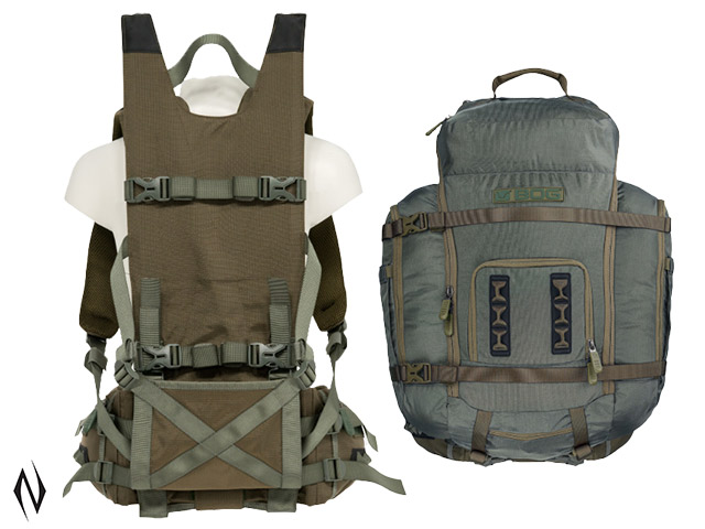 >>FEATURES & SPECIFICATIONS <>Limited Lifetime Warranty backed by BOG <>3500 ci Capacity, Weighs Just 5lbs 7oz saves the Weight for the Pack Out <>Carbon Fibre Frame for Lightweight, Rigid Support <>Adjustable Sternum Strap & Load Lifters for Proper Fit, Function, & Comfort <>Pliable Meat Shelf with Compression Straps for Secure Carry <>Quick-Attach Buckle System Allows for Bag Carry or Use As a Standalone Frame <>Padded Hip Belt with Zippered Gear Pockets for Comfort & Extra Gear Storage <>Oversized Main Compartment with Lower Zip Pocket for Bottom of Bag Access <>420D Micro-Ripstop Material provides the Perfect Combo of Stealth & Durability <>Included 150D Micro-Ripstop Rain Cover for Quiet & Rip-Proof Rain Protection <>Included Detachable Gun/Bow/DeathGrip Carry Boot allows for Hands-Free Carry <>YKK Zippers provide Dependable & Quiet Access <>150LB, Heavy-Duty Buckles designed for Heavy Pack Outs <>4 Sets of Compression Straps for Secure Clothing & Gear Carry <>Hydration Compatible (Up to 3 Litre Hydration Bladder) for Strenuous Hunts <>Retractable Bottle Pockets fit Up to 32oz Nalgene <>Hypalon-Reinforced Cinched Molle Straps for Additional Gear Securement >>Two Waist Sizes <>Medium-Large: 28"-36" <>Extra Large: 34"-44"