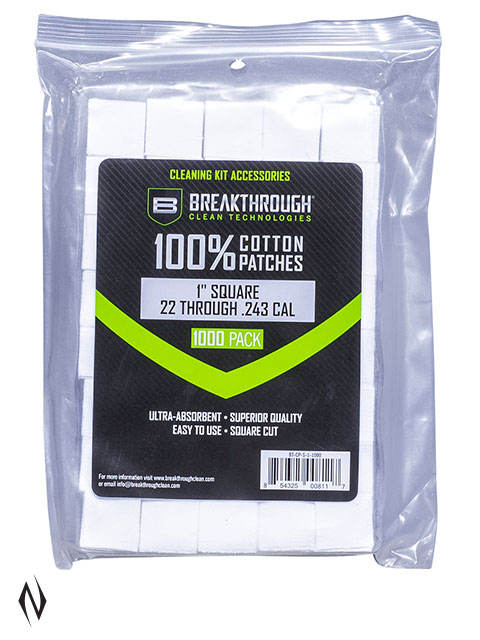 >>These Breakthrough Clean woven 100% Cotton Knit Patches are ultra-absorbent to effectively clean your firearms. The pre-cut squares make them easy to use and are available in a wide variety of calibres to meet all of your gun care needs. >> They come in a plastic stray for easy storage.