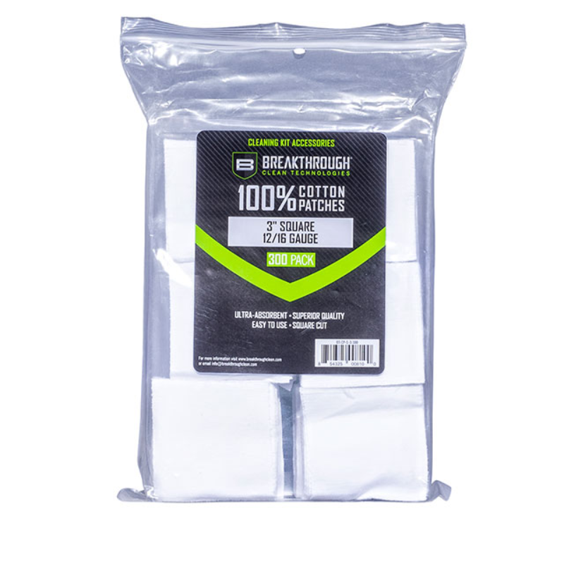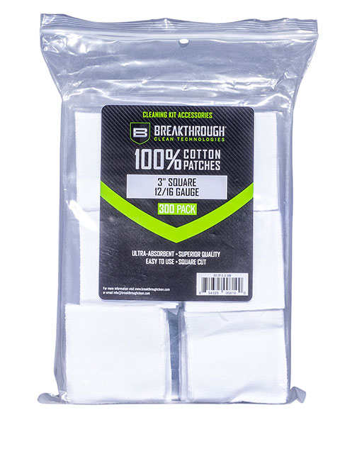 BREAKTHROUGH COTTON PATCHES 3" X 3" 12GA - 16GA 300PK