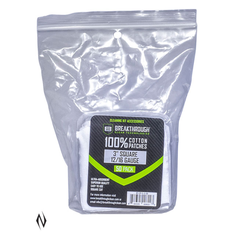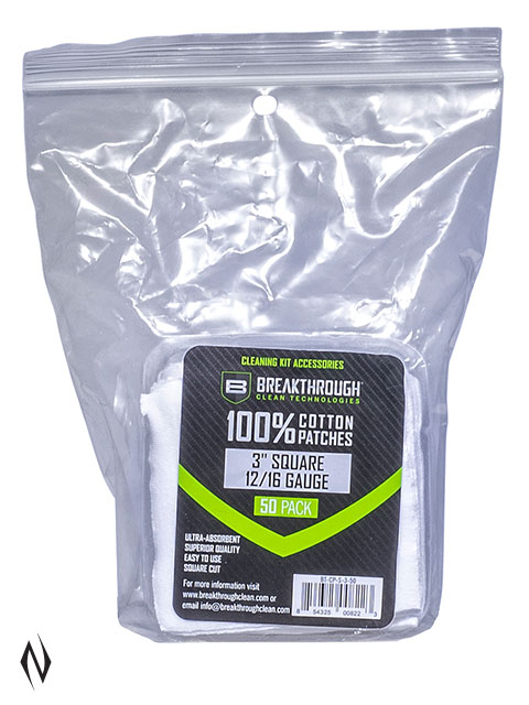 BREAKTHROUGH COTTON PATCHES 3" X 3" 12GA -16GA 50PK