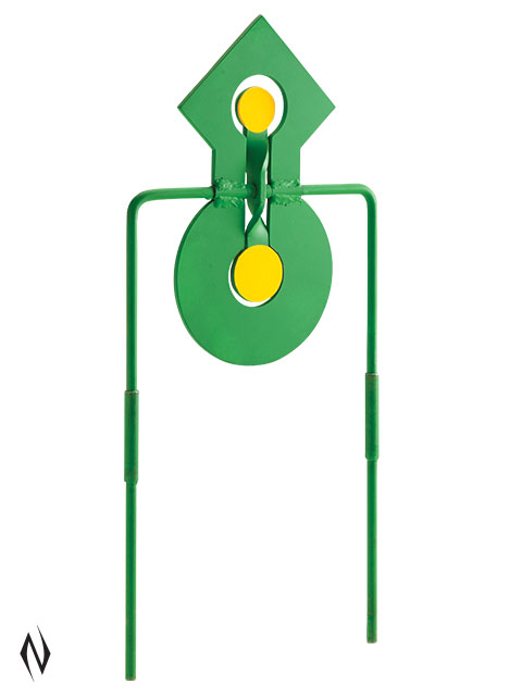<>Target is Radiation Green in colour for increased visibility <>Orange adhesive dots on the inside targets enhance aiming points <>Inside and outside target spin at different speeds <>Three piece metal frame holds target firmly in place