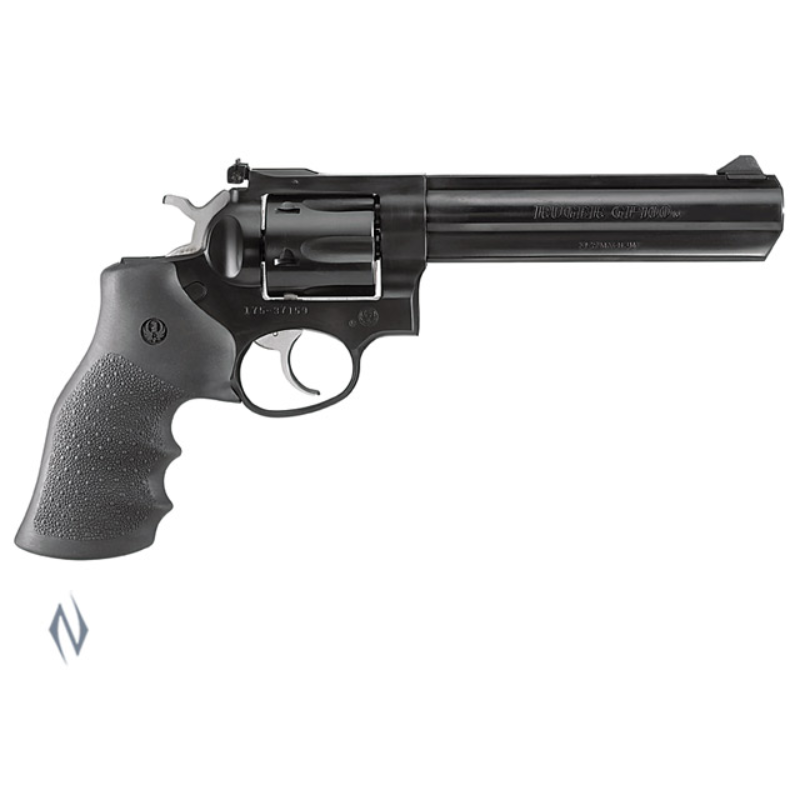 Strength, Simplicity and Ruggedness. >>Ruger GP100 double-action revolvers are among the most comfortable shooting revolvers. Their rugged, medium-sized frame and grip system permit repeated firings with minimal shooter fatigue. >>Easy on the hand and budget, all GP100 revolvers boast solid steel sidewalls (no side-plates), and frame widths that are increased with extra steel in critical areas that support the barrel, making them rugged, reliable, and dependable. >>FEATURES: <> Calibre: .357 Mag <> Action: Double action revolver <> Capacity: 6 <> Grips: Hogue recoil-reducing monogrip <> Sights: Fixed front, adjustable rear <> Weight: 45 oz <> Barrel length: 6"
