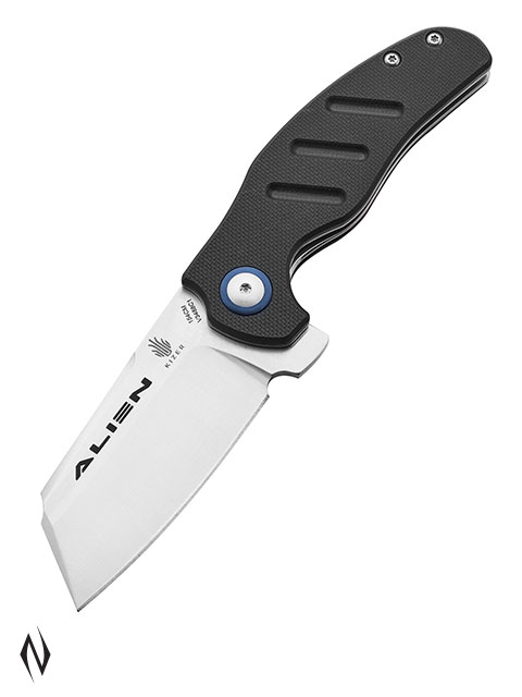 >>Alien Kizer knife offers a remarkable combination of tactical functionality and a refined, stylish appearance. >>The blade deploys effortlessly on a smooth ball-bearing pivot and locks up solidly. >>Black G-10 handle with grooves provide a secure grip and lightweight construction.