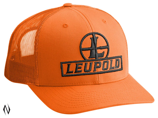 LEUPOLD RETICLE TRUCKER CAP FLAT BILL BLAZE ORANGE