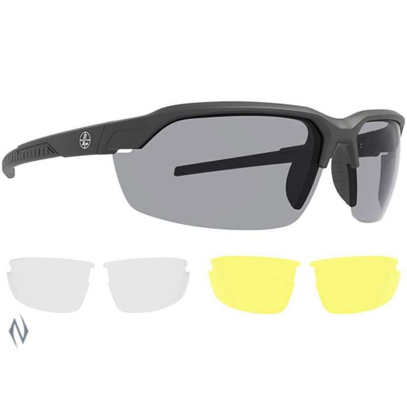 LEUPOLD SUNGLASSES TRACER MATTE BLACK SHADOW GREY INC YELLOW & CLEAR LENSES