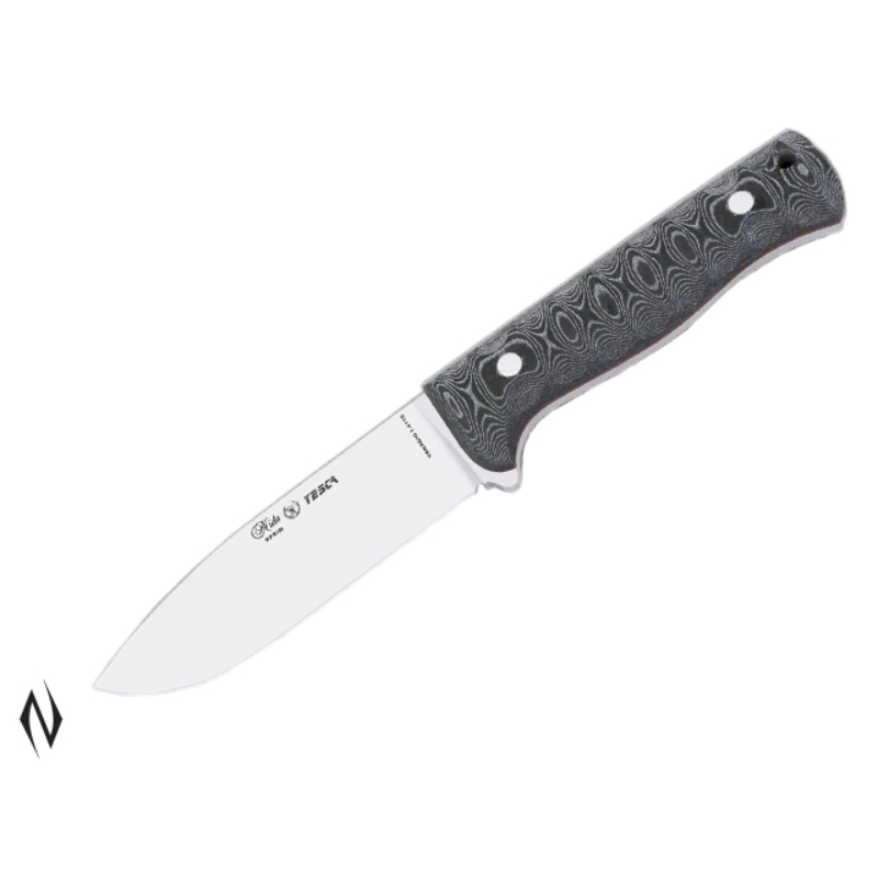 <>Total size: 23cm <>Blade size: 11.5cm <>Blade: Vanadium Steel 1.4116 <>Handle: Mikarta <>Sheath: Leather <>Weight: 196g