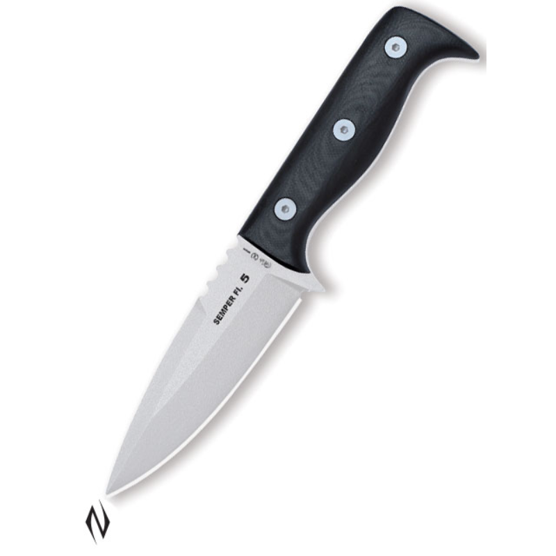 <>Total size: 20cm <>Blade size: 10.5cm <>Blade: Bohler N-690 Steel <>Handle: G-10 <>Sheath: Kydex