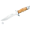 <>Total size: 31cm <>Blade size: 18cm <>Blade: AN-58 Steel <>Handle: Hard chrome and natural olive wood <>Sheath: Brown finest quality leather <>Weight: 400g