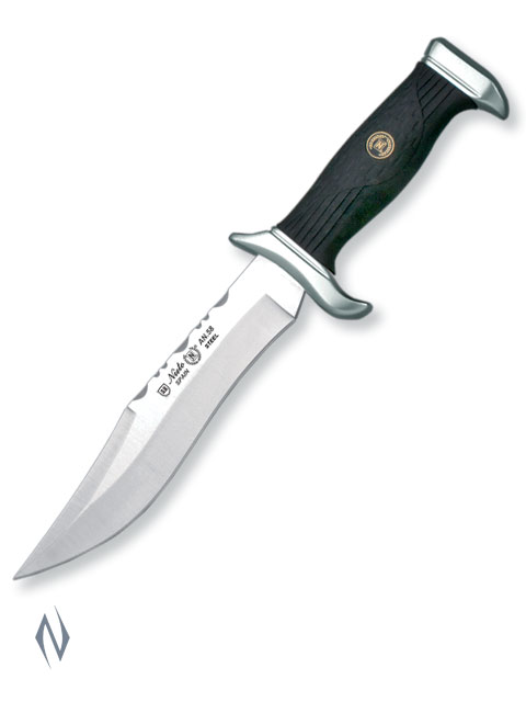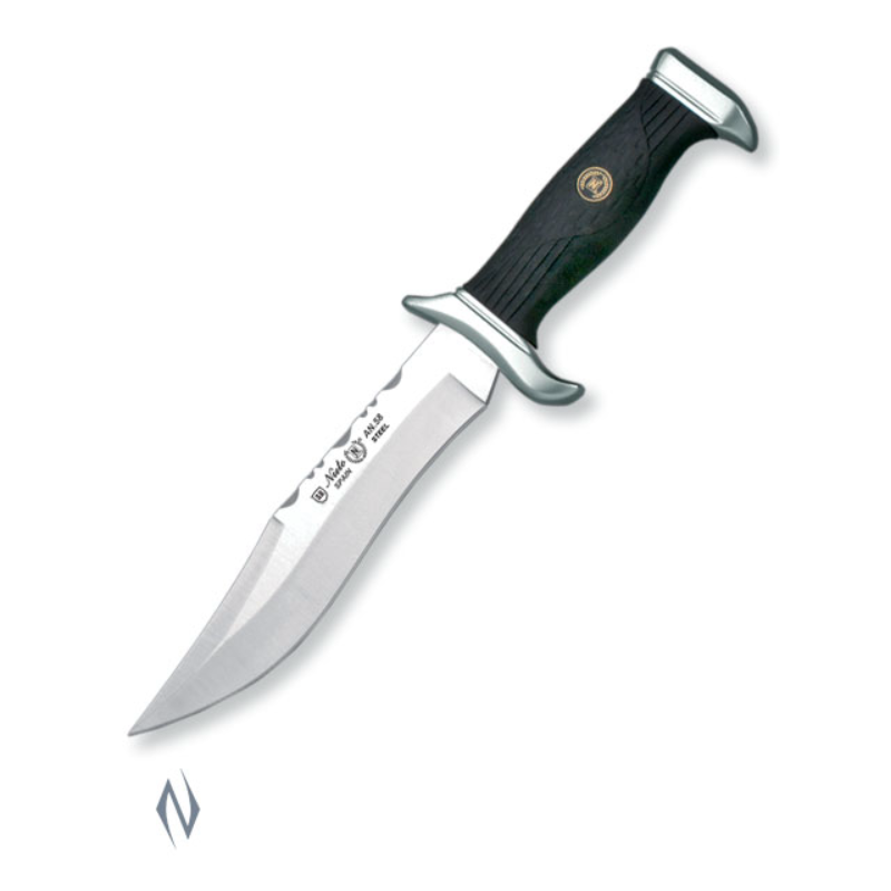 <>Total size: 31cm <>Blade size: 18cm <>Blade: AN-58 Steel <>Handle: Hard chrome and forprene <>Sheath: Black finest quality leather <>Weight: 390g