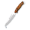 <>Total size: 25cm <>Blade size: 13cm <>Blade: AN-58 Steel <>Handle: Natural olive wood <>Sheath: Brown finest quality leather <>Weight: 134g