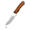 <>Total size: 21cm <>Blade size: 10.5cm <>Blade: AN-58 Steel <>Handle: Natural olive wood <>Sheath: Brown finest quality leather <>Weight: 134g
