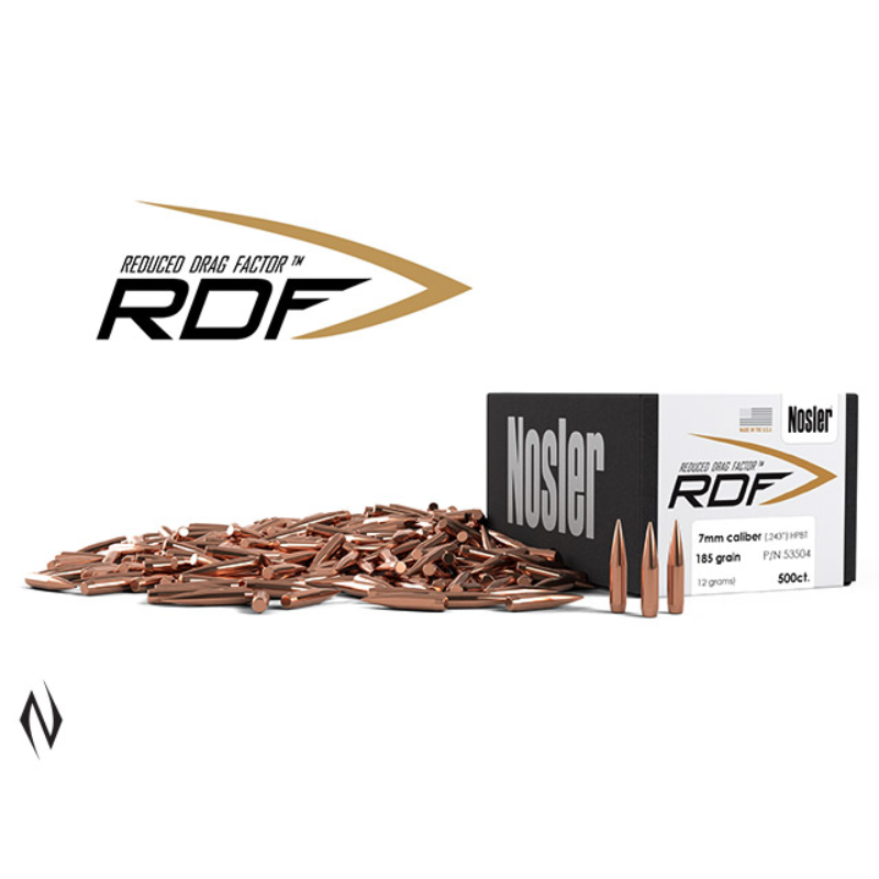 >>FLATTEST SHOOTING MATCH BULLET ON THE MARKET >>Nosler knows what gives competitive shooters an edge, isn't an edge at all. It's a point. And we've worked hard to bring you the smallest one ever - creating the flattest shooting match bullet on the market. Make the switch to RDF, and put yourself on the podium. >>Nosler's RDF line was designed from the ground up to provide exceptionally high BCs, which create the flattest trajectory and least wind drift possible. The keys to the RDF's outstanding performance are Nosler's meticulously optimised compound ogive and long, drag reducing boattail, which make handloading a snap and create an incredibly sleek form factor. RDF bullets also have the smallest, most consistent meplats of any hollow point match bullet line, so there is no need to point or trim tips. >>Highest BC's, smallest meplat, tighter groups - Nosler RDF