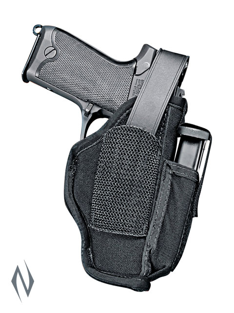 Uncle Mikes pioneered the use of nylon in holsters more than 20 years ago and truly revolutionised the industry. Through countless days in the field – with hunters, law-enforcement agencies and the military – this incredibly tough, tightly woven material has proven itself up to the test. >>SIDEKICK AMBIDEXTROUS HIP HOLSTERS?? <>EASILY CONVERT: Converts for right- or left-handed use. ??<>TWO IN ONE: Reversible belt clip to wear outside (belts up to 2.5" wide). ??<>SECURE: Non-stretch Hook & Loop retention strap and moulded thumb break keep your firearm snug. Includes Strap Trap adjustment tool. ??<>DURABLE: Tough, three layer with padded interior. Spring steel belt clip is powder-coated for corrosion resistance.